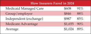 The second column is the medical loss ratio. All four markets spent more than the minimum 85% requirement on claims meaning all “profits” were below the maximum 15%.