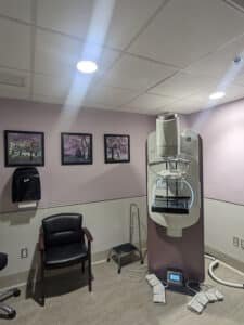 The new equipment also offers breast biopsy capability, which the previous equipment did not. Patients requiring a biopsy can have it done in the same space. Alexander isn’t aware of any other facility in Auburn offering breast biopsy except Diagnostic Imaging Center.