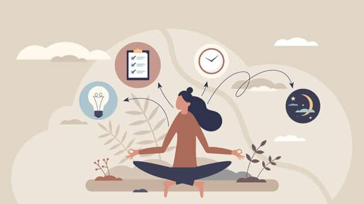 • meditation: focused breathing or repetition of words or phrases to quiet the mind and lessen stressful thoughts and feelings.