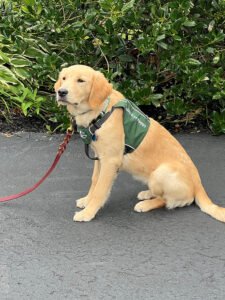 Per the agency’s protocols, dogs in the program learn basics from their puppy raisers like foundational commands, home rules like staying off furniture and not stealing shoes and public behavior like walking well on a leash. They also experience exposure to many different venues.