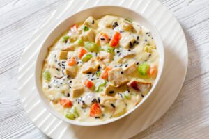 Campbell’s invented condensed soup in 1897 by removing about half the water, making it easier to store and prepare. It’s the only soup I knew as a kid, and my childhood favorites—tomato, cream of mushroom, and chicken noodle soup—continue to be three of their top sellers.